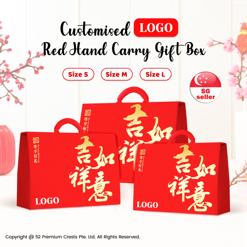 🧧 Customised LOGO Red Hand Carry Gift Box | Available in 3 Sizes | Chinese New Year Packaging