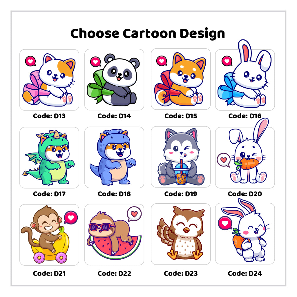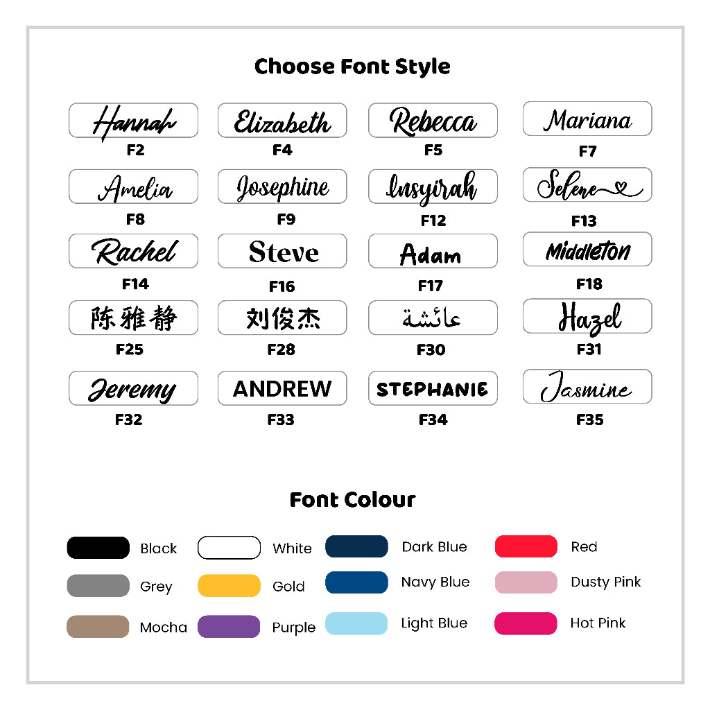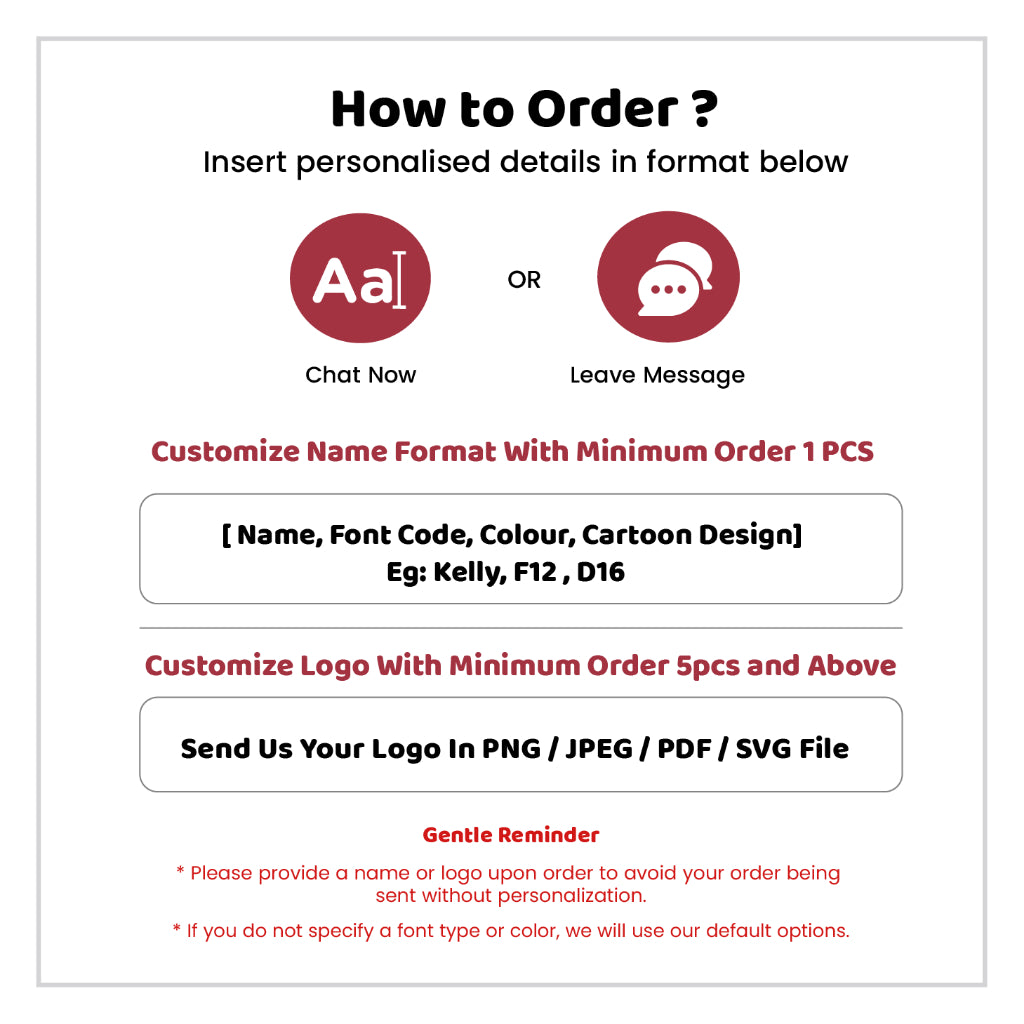 Chat with us and send your Name, Font Code, Font Color, and Sticker Code.