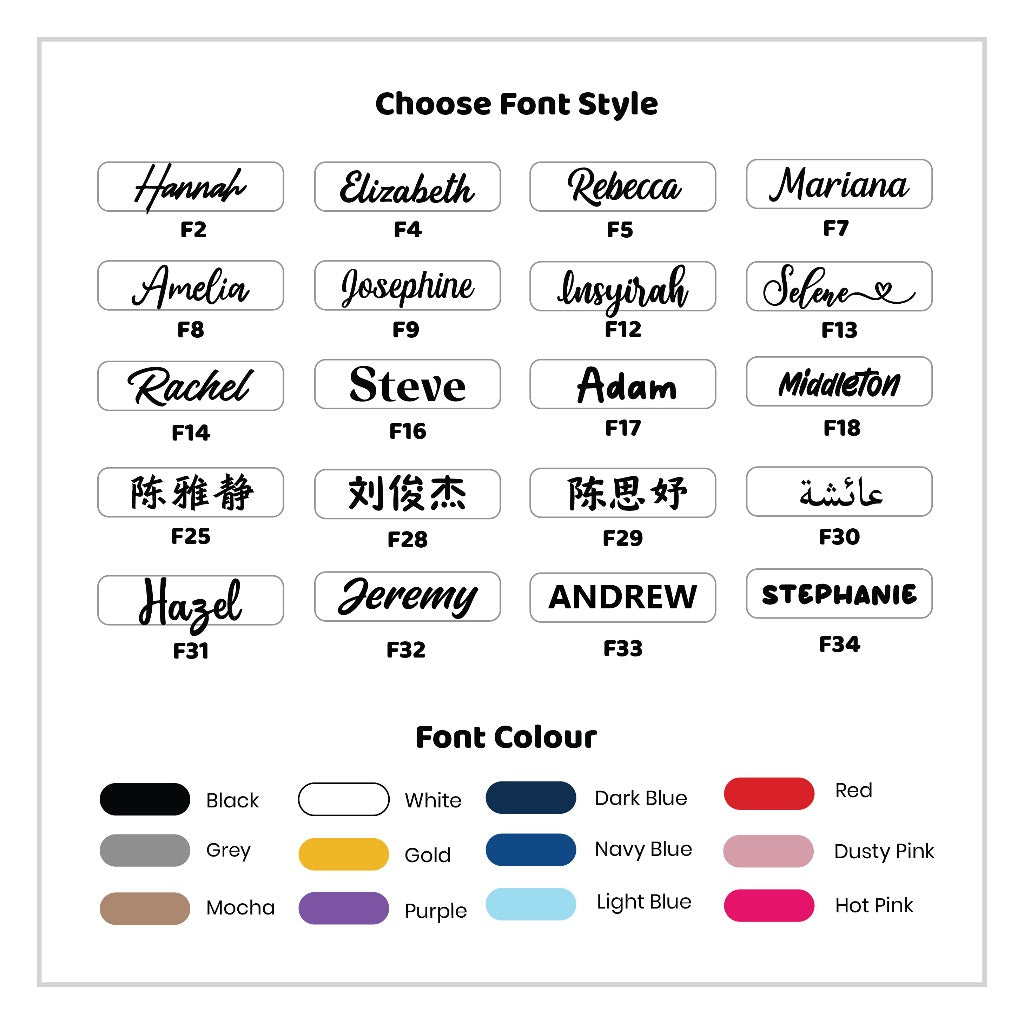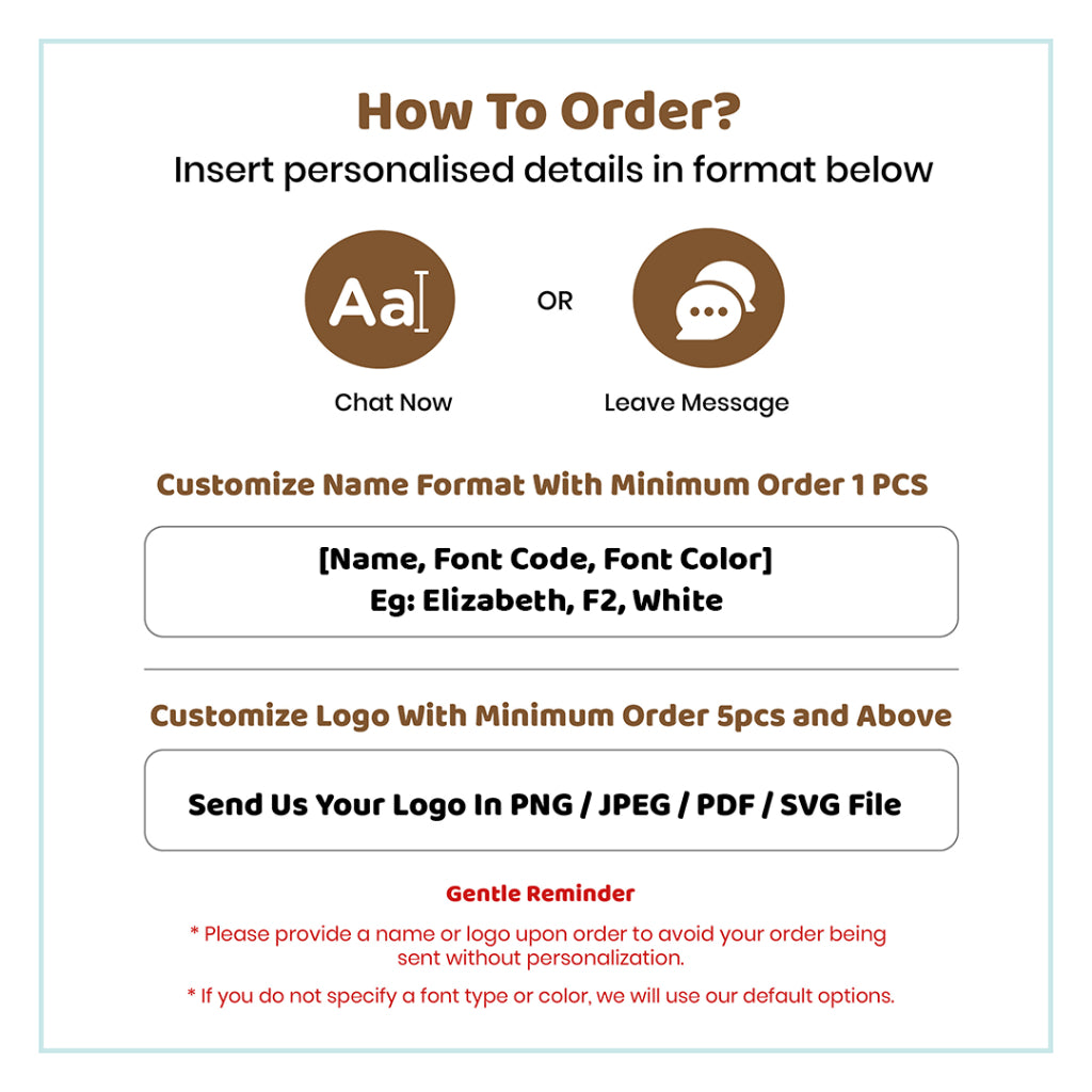 Message us in shopee chat : Name, Font Code, Font Colour, Image code